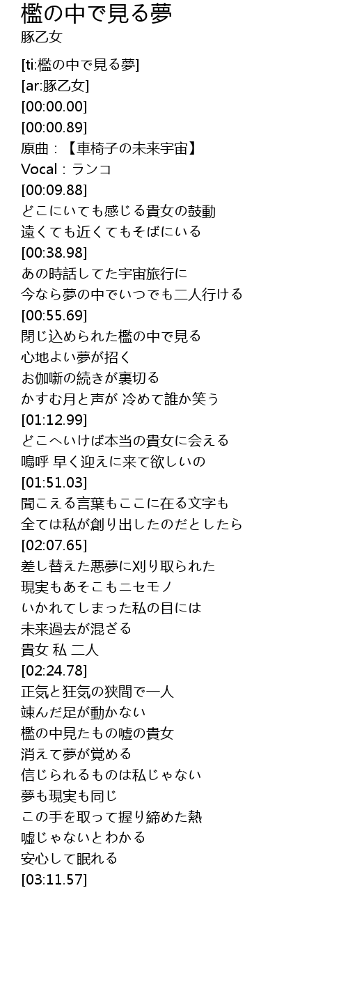 | [00:03.34] | 原曲:【車椅子の未来宇宙】 |