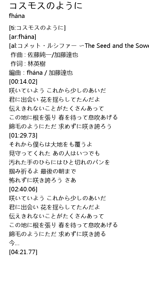| [03:55.50] | 綿毛のようにただ 求めずに咲き誇る |