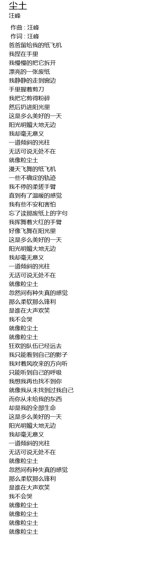 | [00:00.00] | 作曲 : 汪峰 |