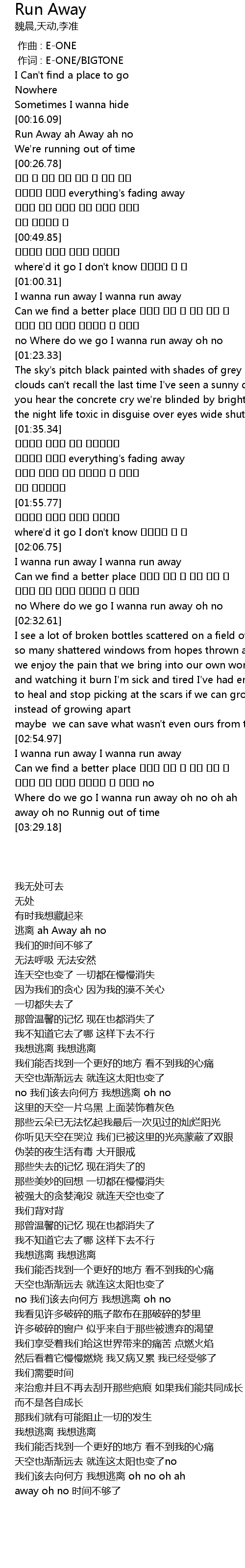 | [00:16.46] | Run Away ah Away ah no |