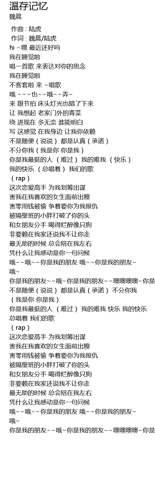 | [00:00.443] | 作词 : 魏晨/陆虎 |