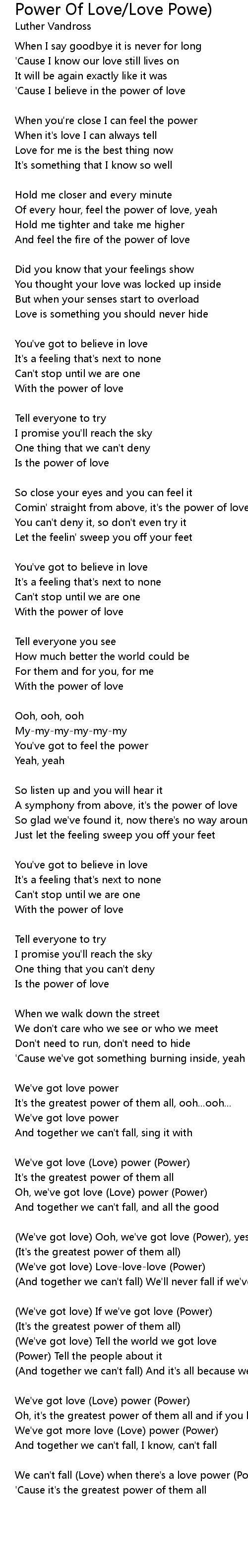 We can't fall (Love) when there's a love power (Power) |