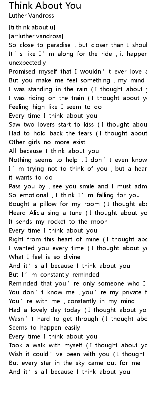 | [01:47.350] | Heard Alicia sing a tune I thought about you |