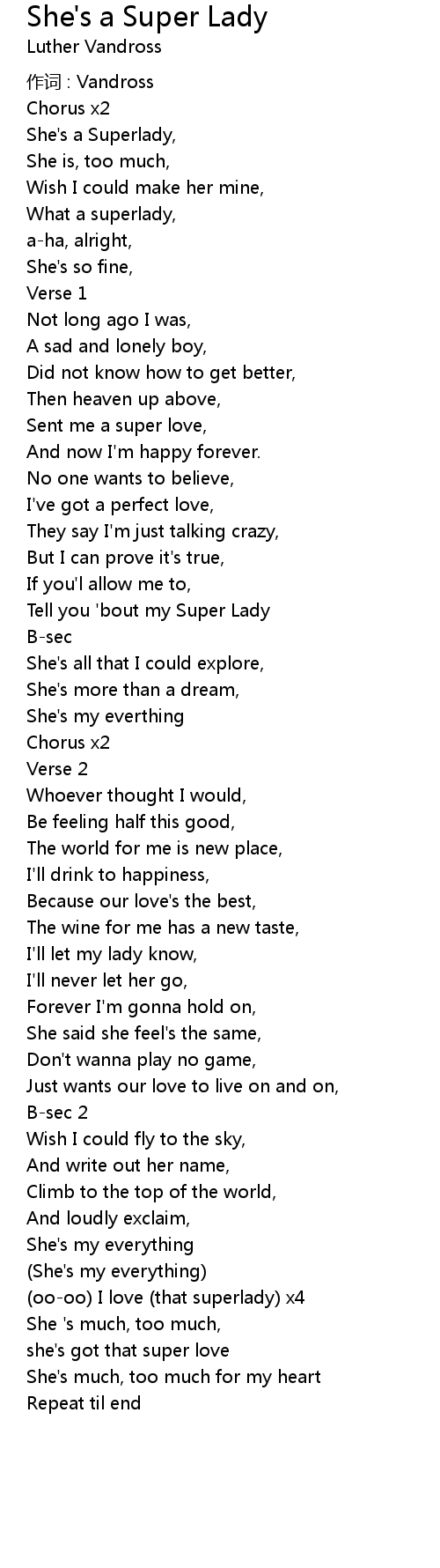 | Tell you 'bout my Super Lady | |
