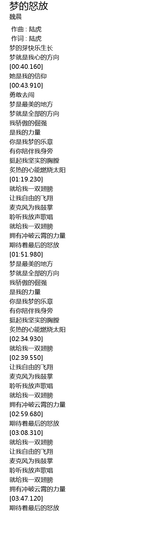 | [03:01.000] | qī dài zhe zuì hòu de nù fàng |