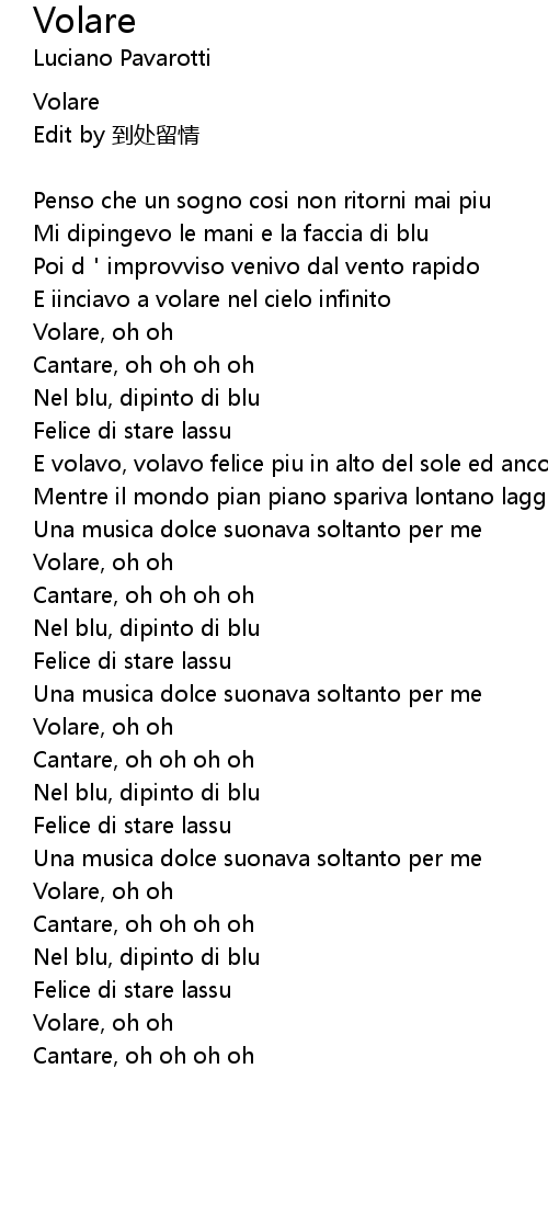 | E volavo, volavo felice piu in alto del sole ed ancora piu su | |
