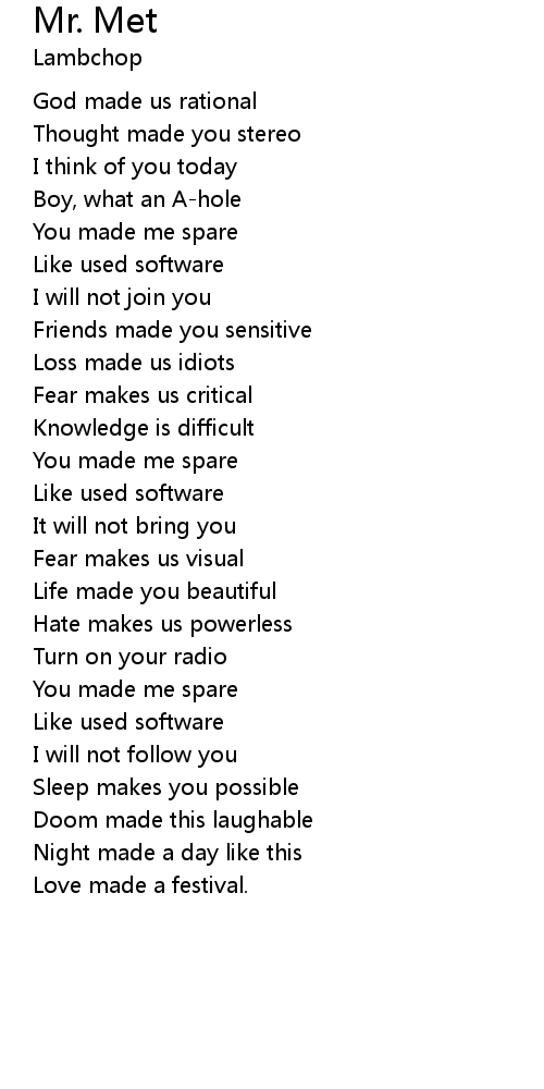| You made me spare | |