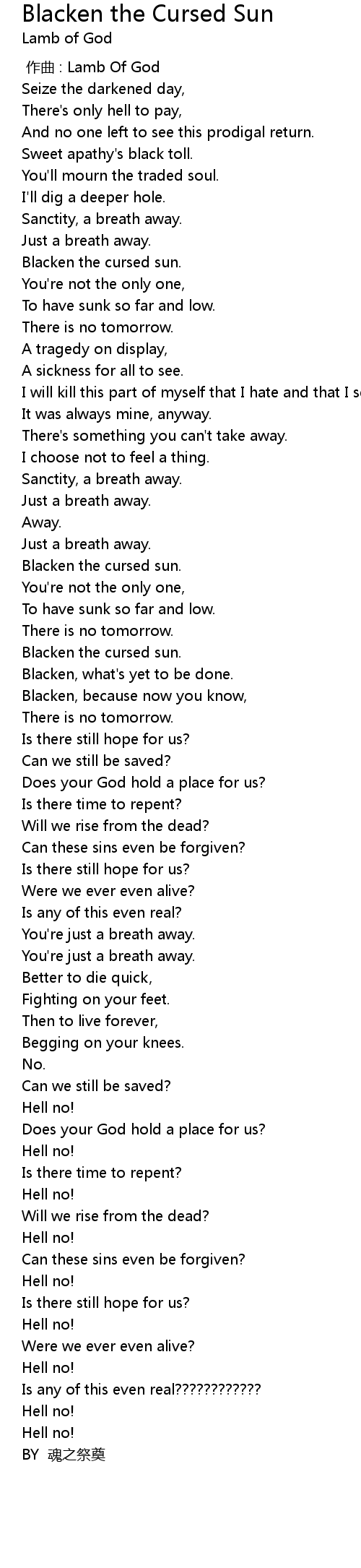 | [02:44.92] | Blacken, what' s yet to be done. |