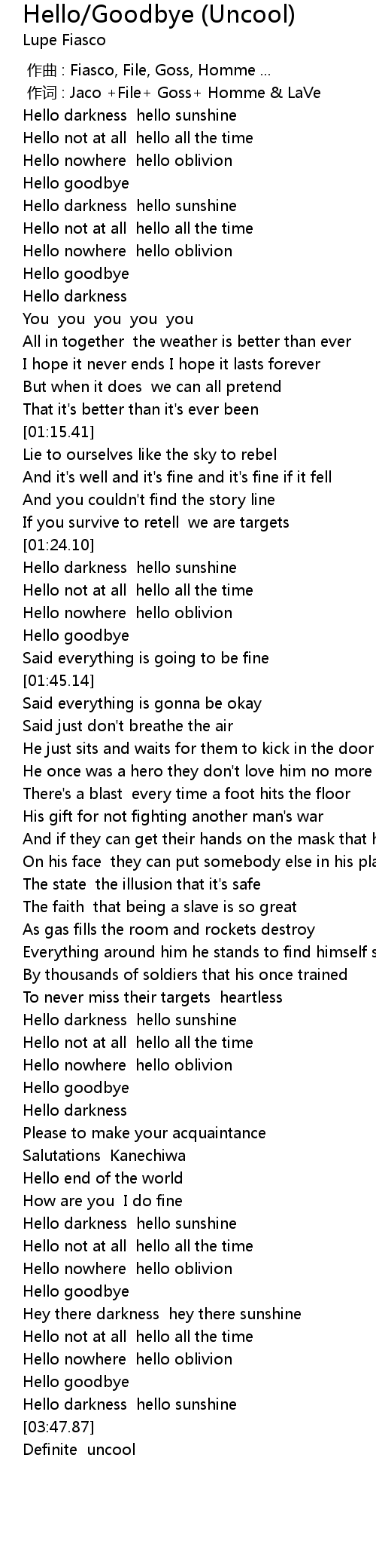| [03:37.18] | Hello goodbye |