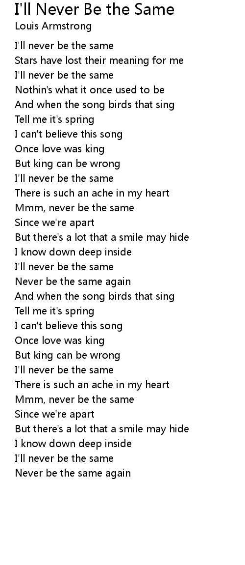 I'll never be the same |