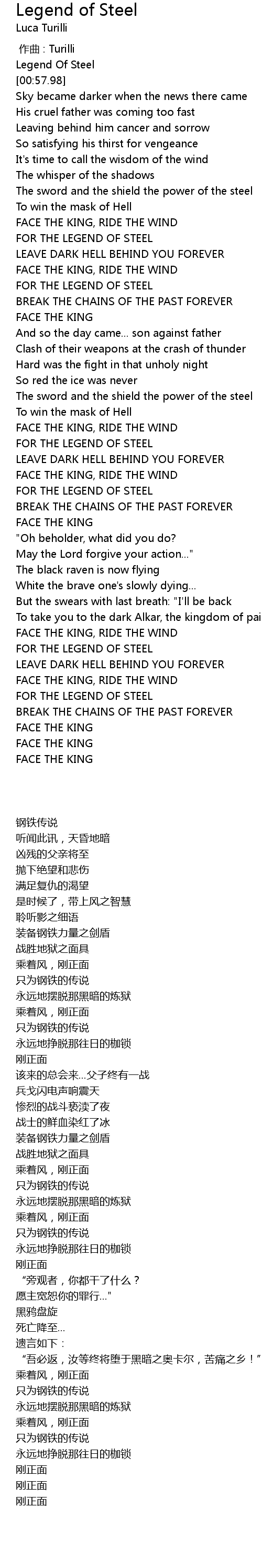 | [02:56.35] | FOR THE LEGEND OF STEEL |