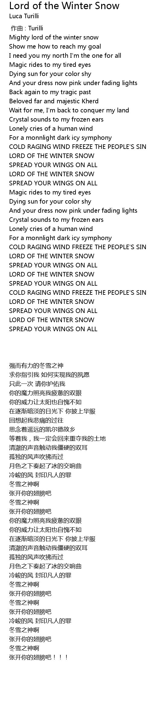 | [05:01.34] | LORD OF THE WINTER SNOW |