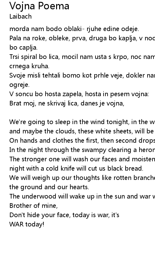 Trsi spiral bo lica, mocil nam usta s krpo, noc nam bo z mrzlim nozem rezala crnega kruha.