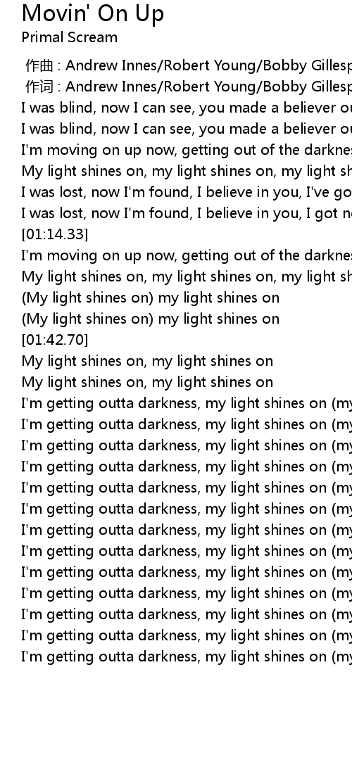 | [00:34.28] | I' m moving on up now, getting out of the darkness |