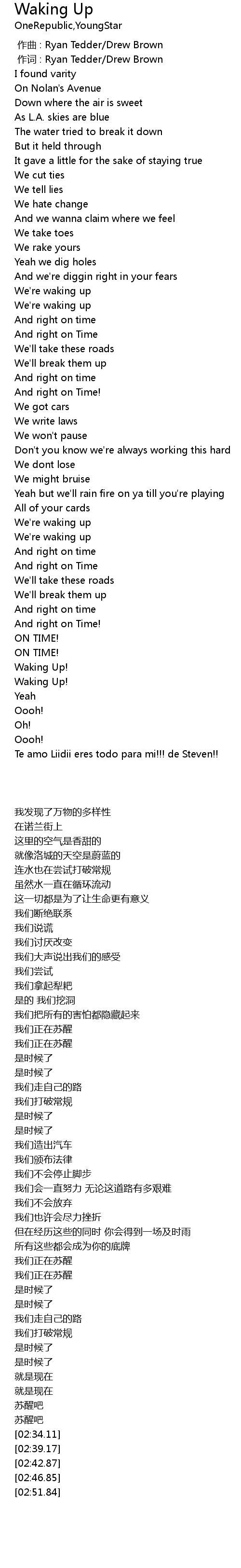 | [02:32.18] | Waking Up! |