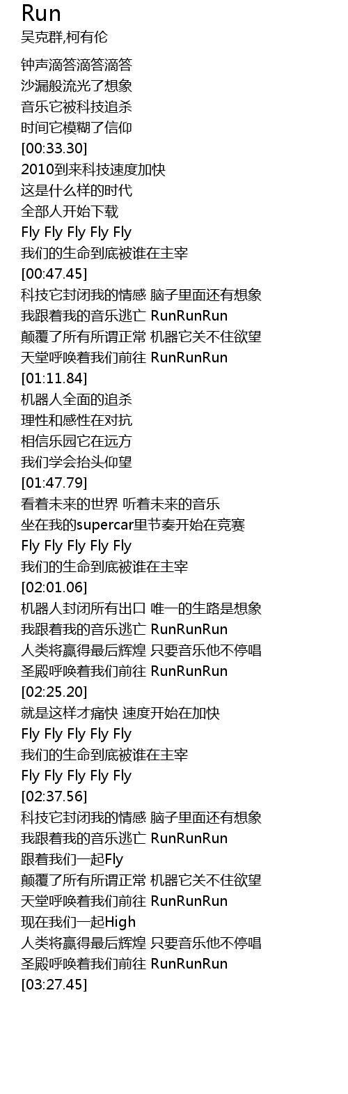 [02:57.38] 我跟着我的音乐逃亡 RunRunRun