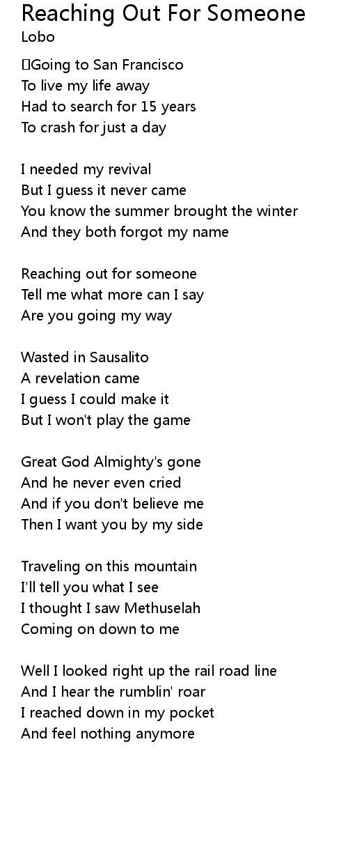 | Song | Reaching Out For Someone |