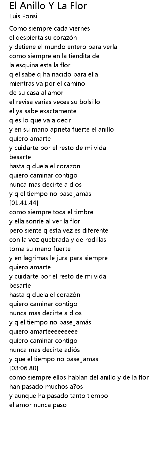 | [03:07.80] | como siempre ellos hablan del anillo y de la flor |