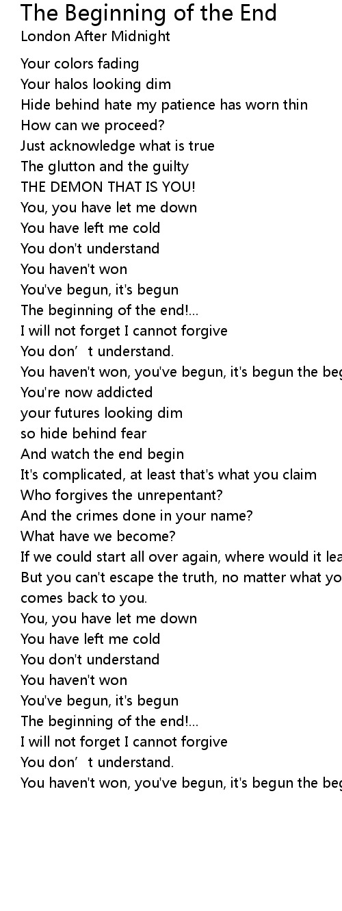 | You haven't won, you've begun, it's begun the beginning of the end! |