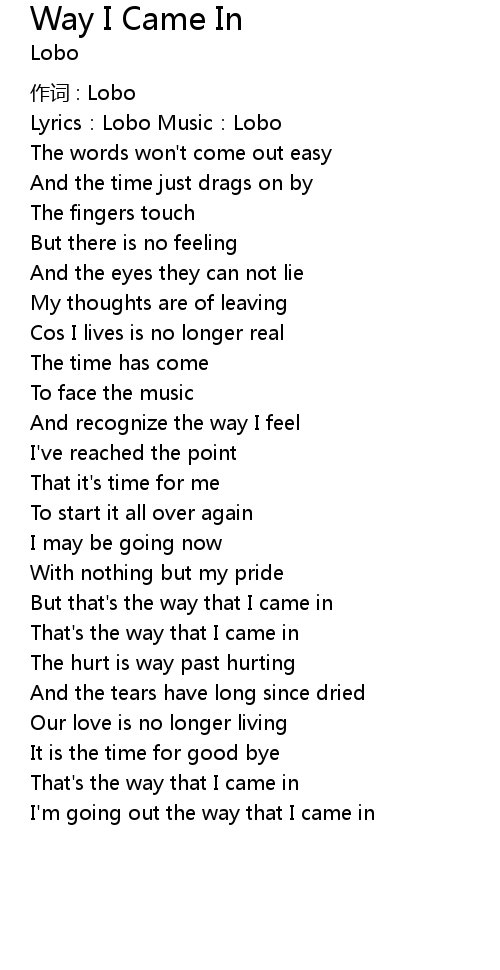 | Lyrics:Lobo Music:Lobo | |
