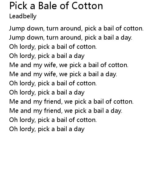 | Song | Pick a Bale of Cotton |
