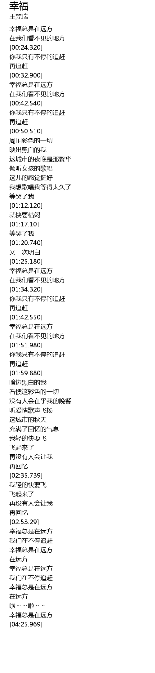 | [03:21.899] | 幸福总是在远方 |