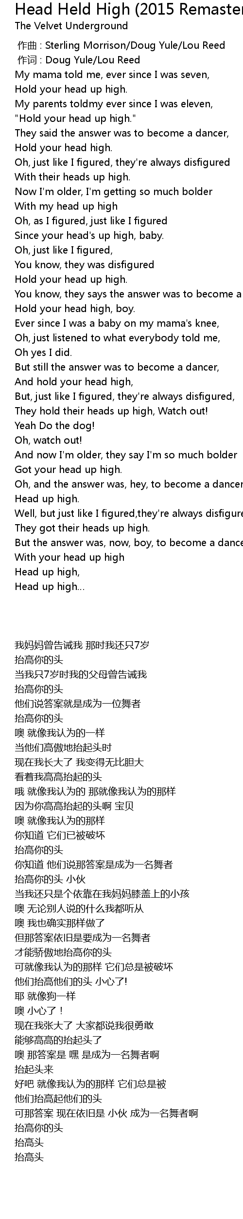 | [01:33.84] | They hold their heads up high, Watch out! |