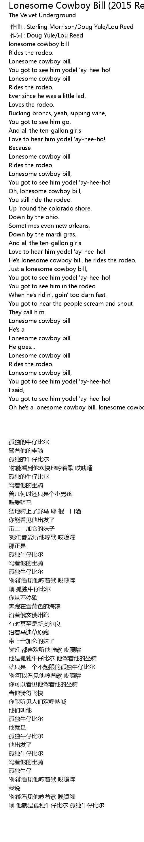 | [02:28.35] | Oh he's a lonesome cowboy bill, lonesome cowboy bill... |