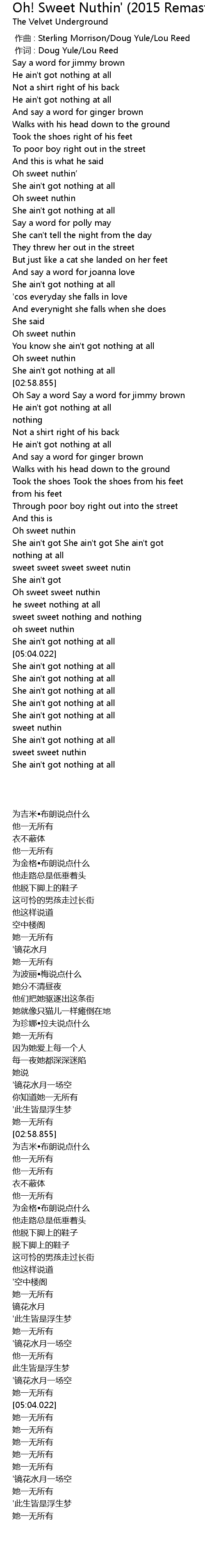 | [00:01.00] | 作词 : Doug Yule/Lou Reed |