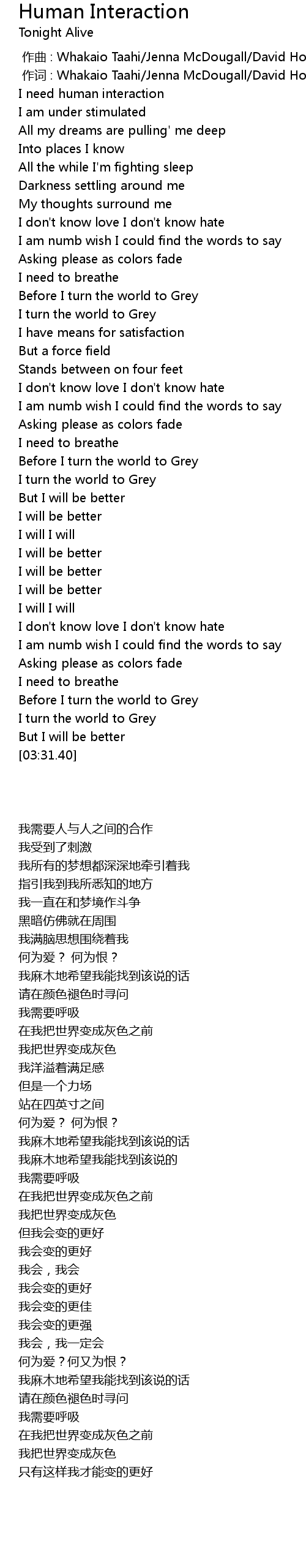 | [00:13.64] | I need human interaction |