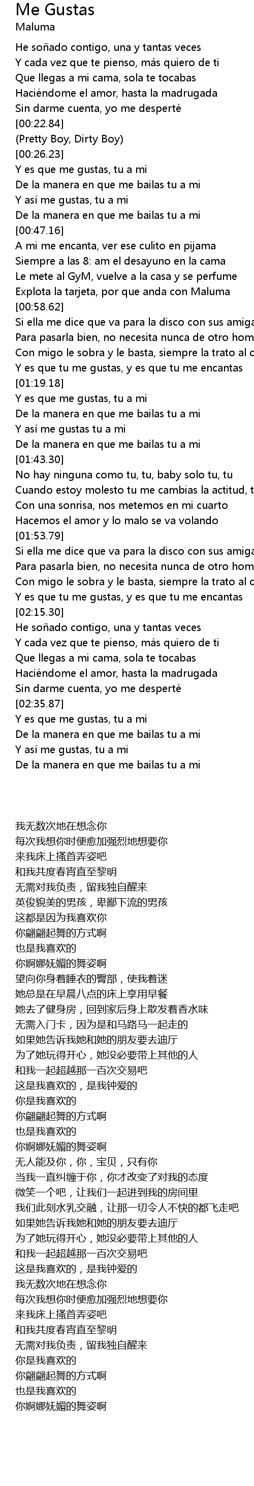 | [02:49.71] | Y asi me gustas, tu a mi |