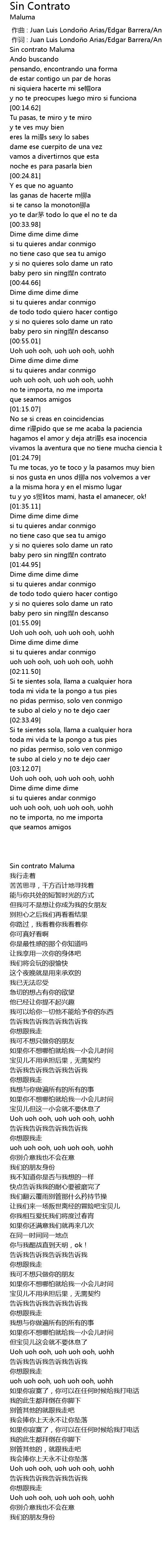 | [00:42.89] | baby pero sin ning méi n contrato |