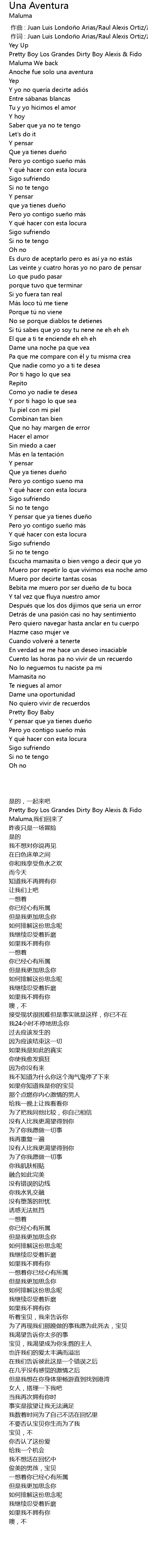 | [00:01.00] | 作词 : Juan Luis Londoño Arias/Raul Alexis Ortiz/Joel Martínez |