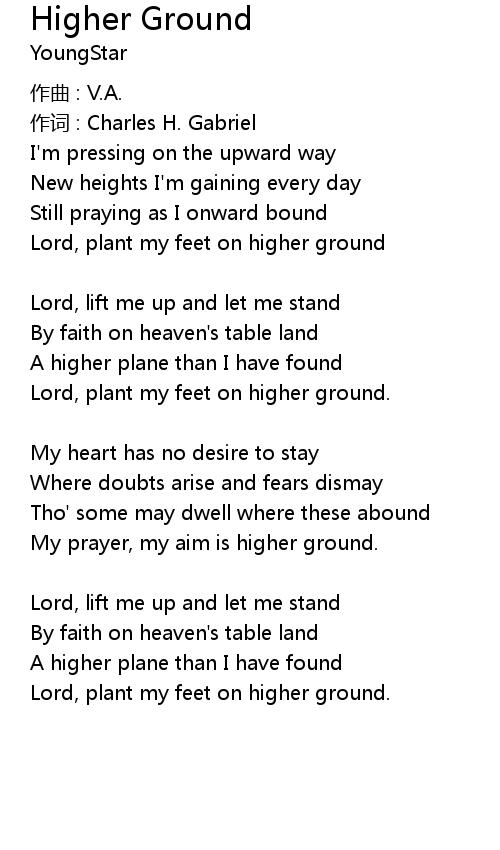 | My prayer, my aim is higher ground. | |