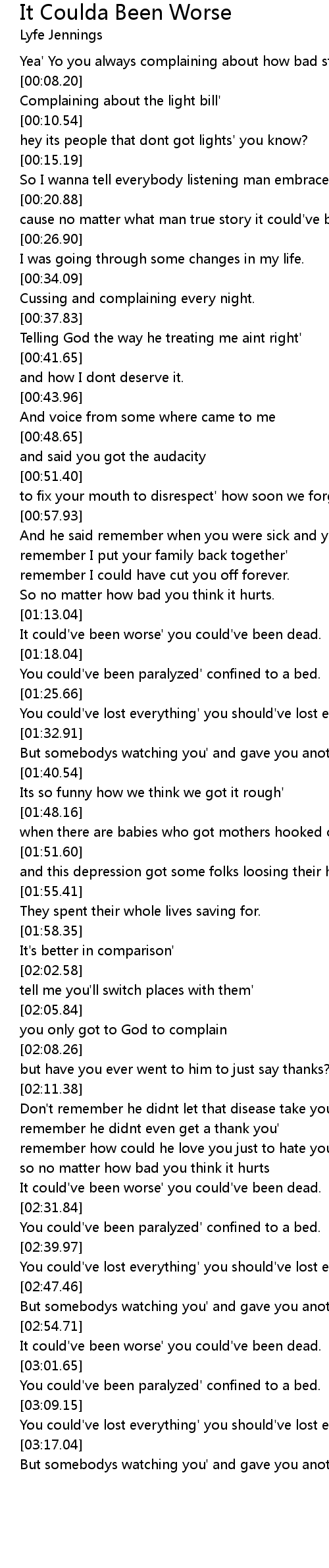 [03:04.77] You could've been paralyzed' confined to a bed.