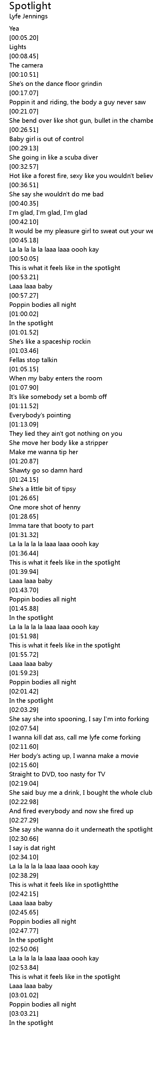 She say she wanna do it underneath the spotlight |