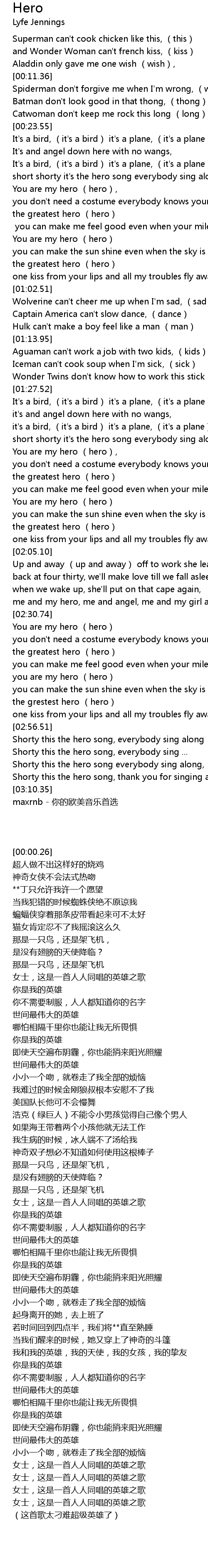 | [01:53.16] | You are my hero (hero) |