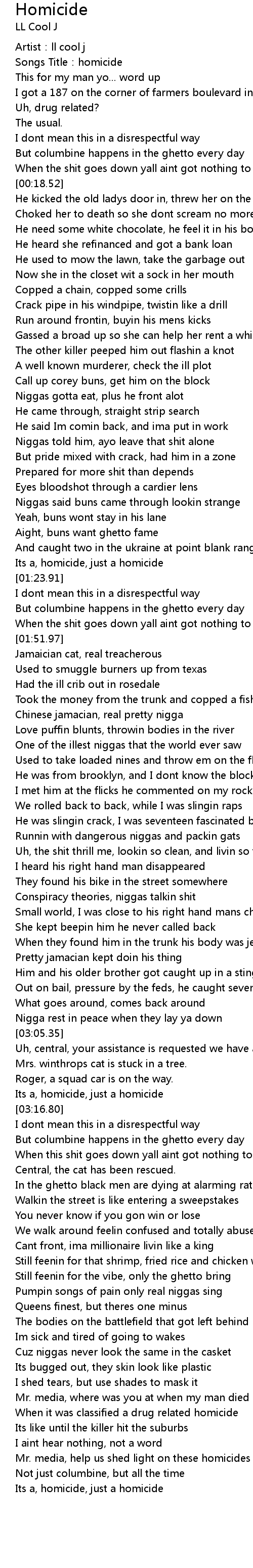 | [00:13.05] | But columbine happens in the ghetto every day |