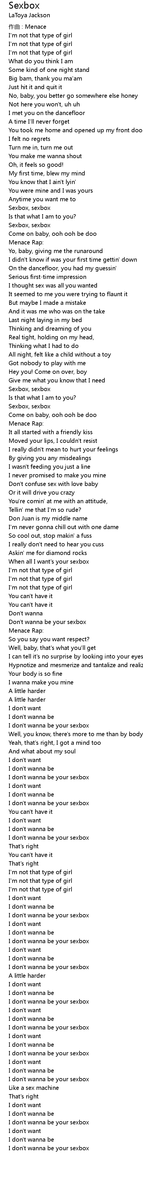 | I don' t wanna be your sexbox |