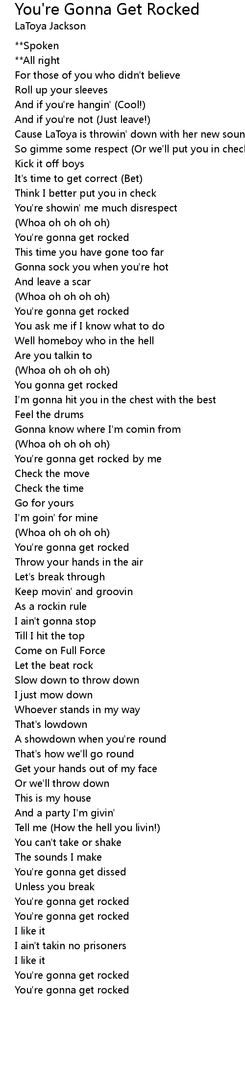 You're gonna get rocked |