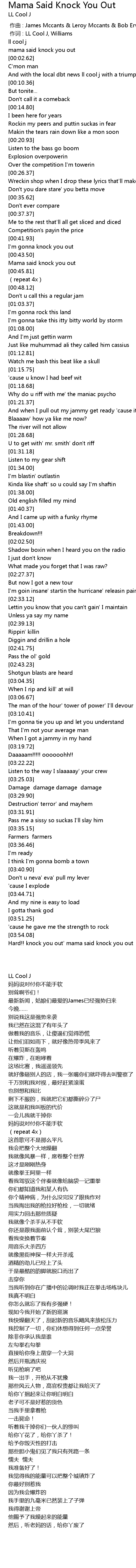 | [03:54.83] | Hard!! knock you out' mama said knock you out |