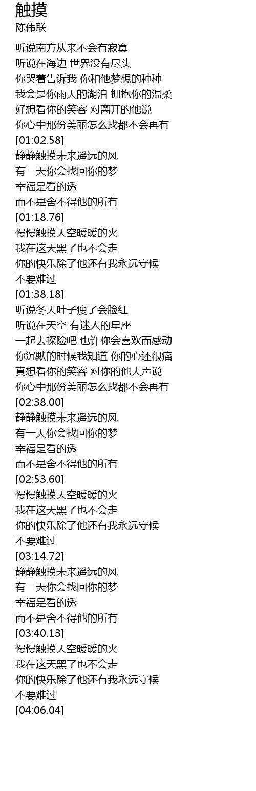 | [03:24.31] | 静静触摸未来遥远的风 |