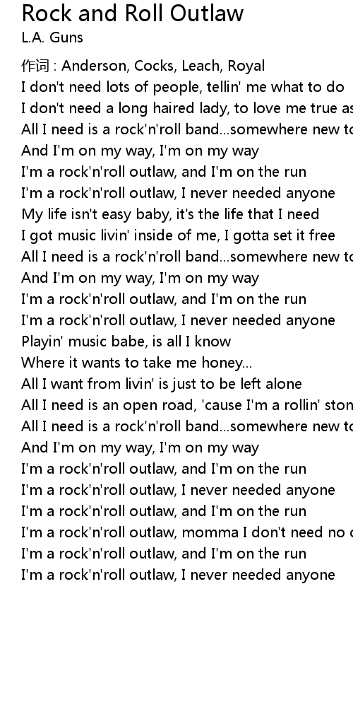 | I' m a rock' n' roll outlaw, momma I don' t need no one | |