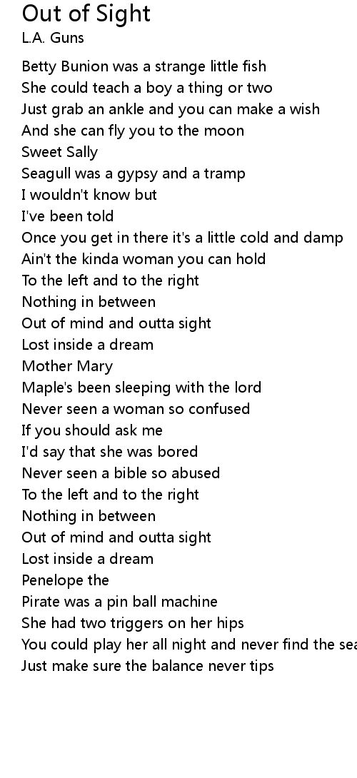 Out of mind and outta sight |