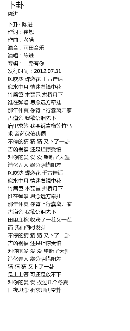 | [02:52.30] | 猜 猜 猜 又卜了一卦 |