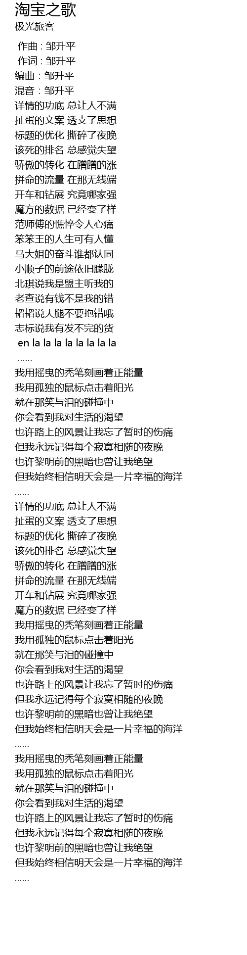 | [00:05.47] | 编曲:邹升平 |