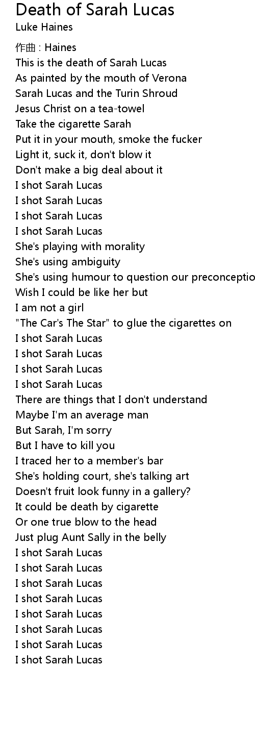 | This is the death of Sarah Lucas | |