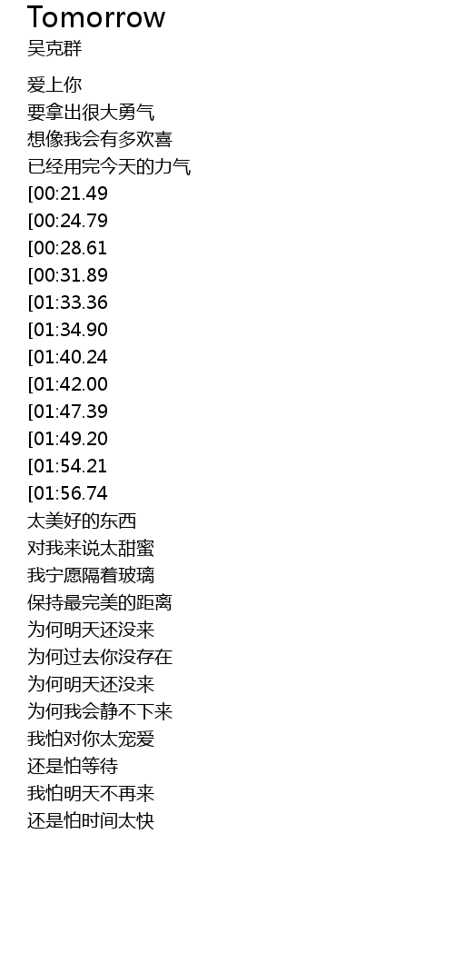 | [02:43.84][01:47.39][00:50.91] | Tomorrow |