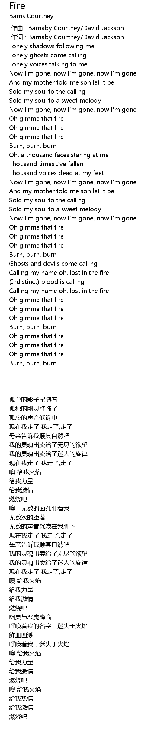 | [02:24.43] | Calling my name oh, lost in the fire |