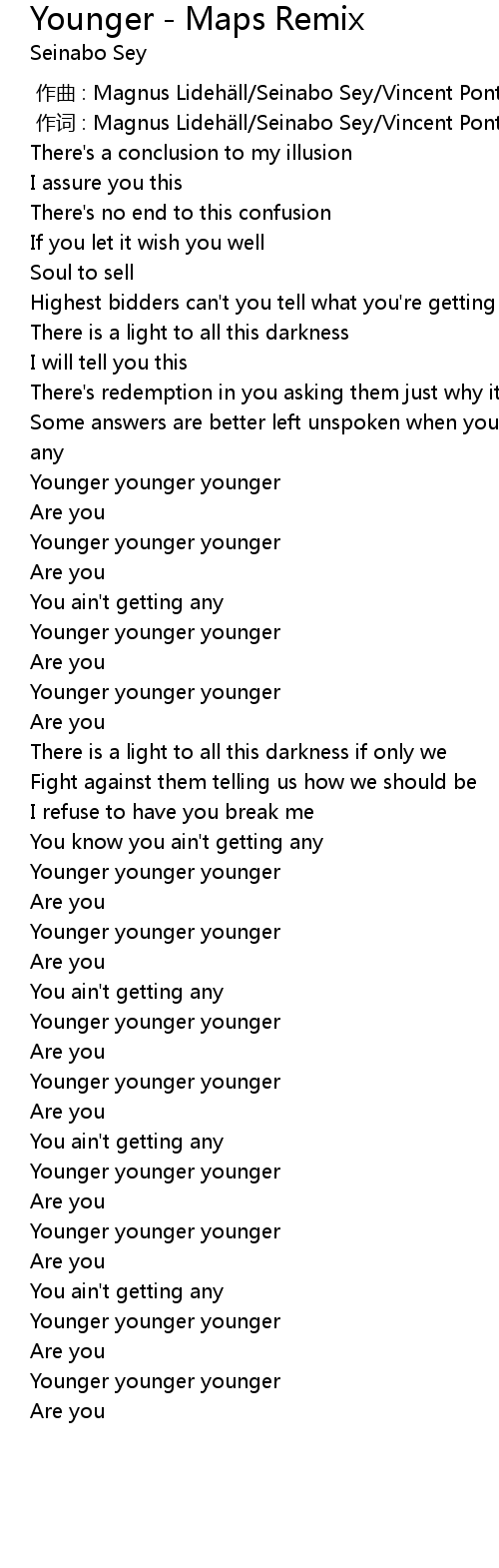 | [00:46.46] | Younger younger younger |